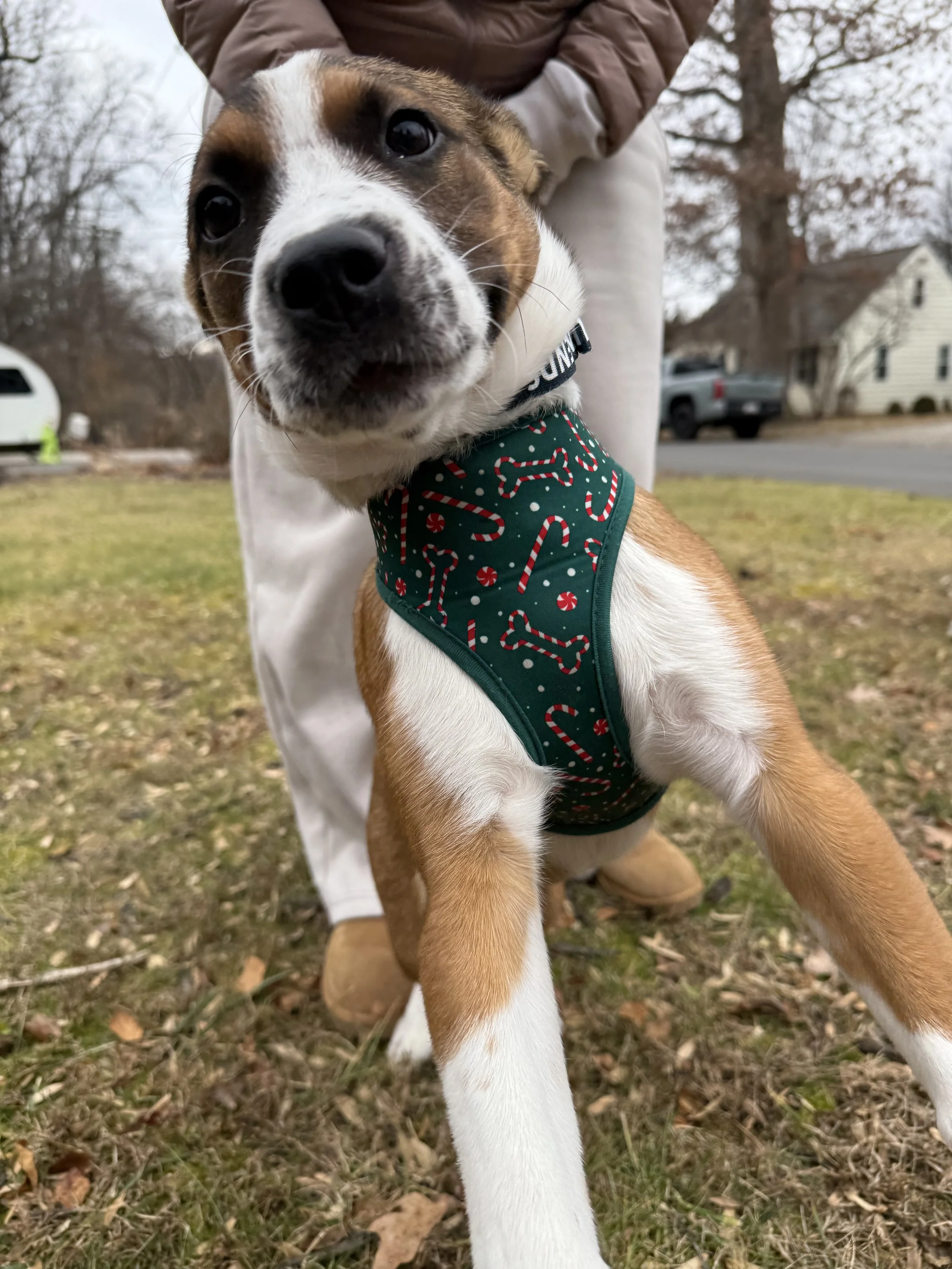 Story: Bear was rescued from a shelter in North Carolina. We are so happy to have him safe and sound in a foster home in the DC area now. Bear is a happy sweetie who loves people and gets along great with other dogs and puppies. He knows just how to get comfortable up on the couch with his humans, and will love to join you on walks and trots around the neighborhood. Bear is just looking for someone to be his new best furend and we know that he will repay them with endless amounts of love and tail wags. Like all dogs, Bear will need an adopter who is committed to setting him up for success by enrolling in obedience training and exercising him both mentally and physically. He will also need love, patience, and socialization in order to thrive!
