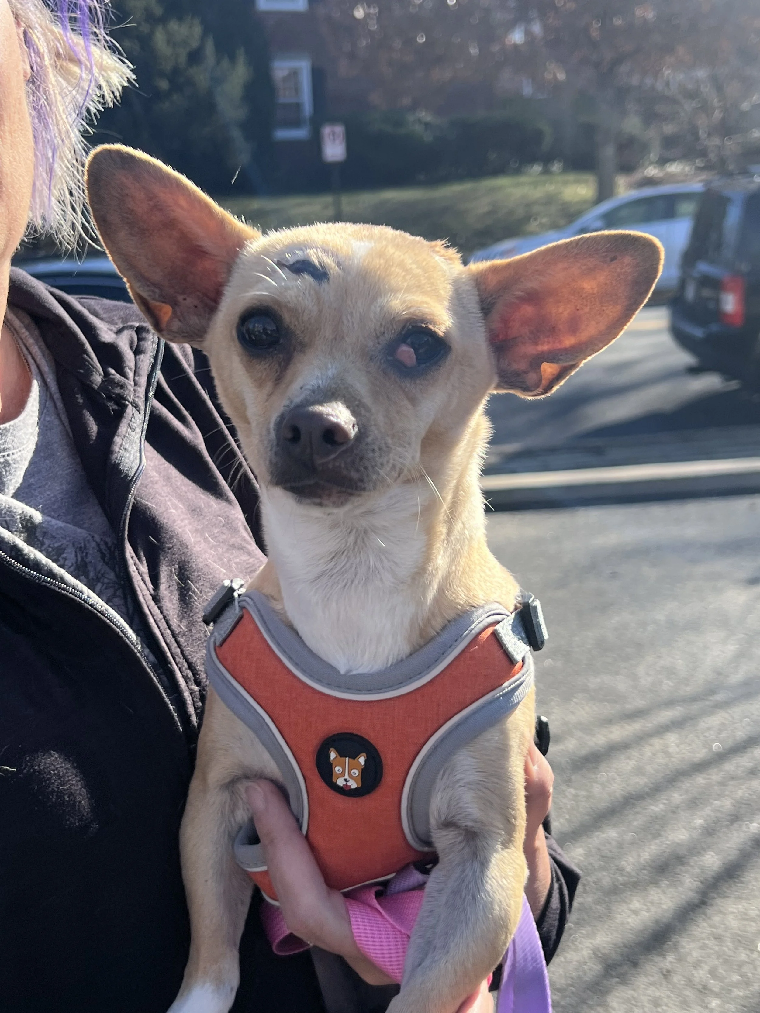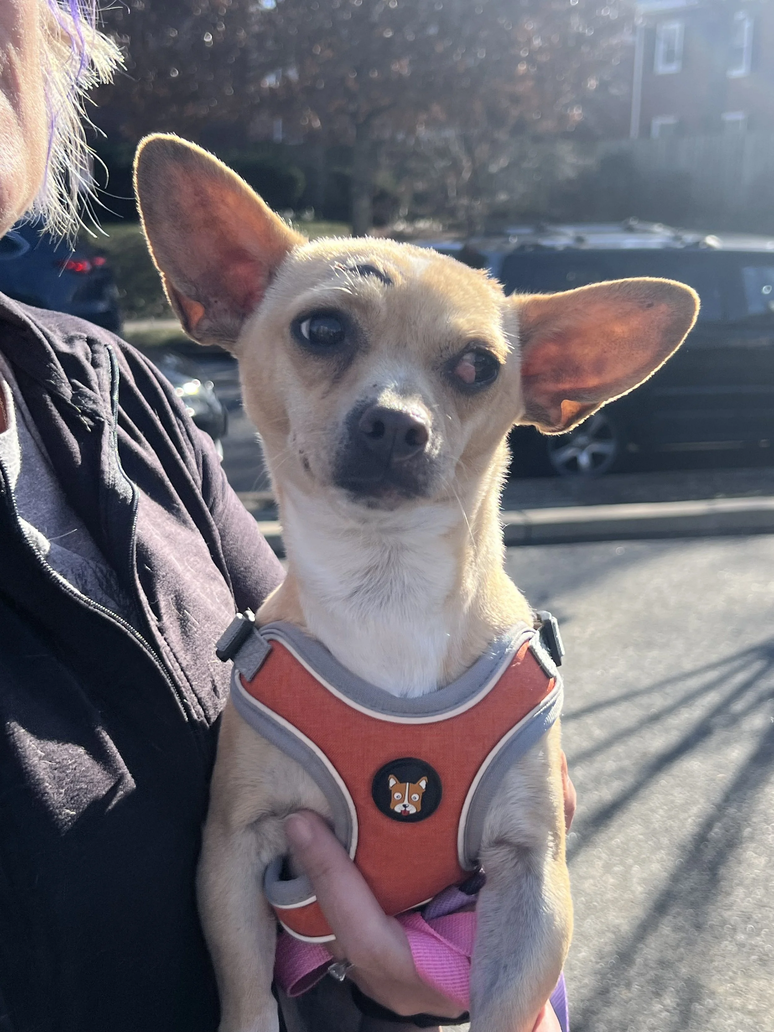 Story: Chili was living in a shelter in North Carolina where she was on the euthanasia list. She has cherry eye and heartworm but both are very treatable and will be treated prior to adoption at the cost of the rescue. We are so happy to have her safe and sound in a foster home in the DC area now. Chili is a sweetie who loves people and gets along great with other dogs and puppies. While she’s still settling in now, soon enough she’ll know how to get comfortable up on the couch with her humans, and will love to join you on walks and trots around the neighborhood. Chili is just looking for someone to be her new best furend and we know that she will repay them with endless amounts of love and tail wags. Like all dogs, Chili will need an adopter who is committed to setting her up for success by enrolling in obedience training and exercising her both mentally and physically. She will also need love, patience, and socialization in order to thrive!