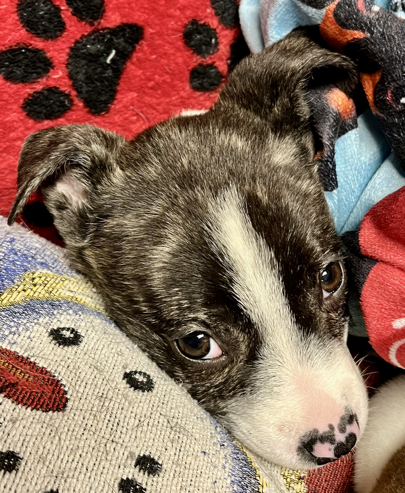 Story: Oswald was rescued from a shelter in Alabama with his sister. We are so happy to have him safe and sound in a foster home in the DC area now. Oswald is a happy sweetie who loves people and gets along great with other dogs and puppies. He knows just how to get comfortable up on the couch with his humans, and will love to join you on walks and trots around the neighborhood. Oswald is just looking for someone to be his new best furend and we know that he will repay them with endless amounts of love and tail wags. Like all dogs, Oswald will need an adopter who is committed to setting him up for success by enrolling in obedience training and exercising him both mentally and physically. He will also need love, patience, and socialization in order to thrive!