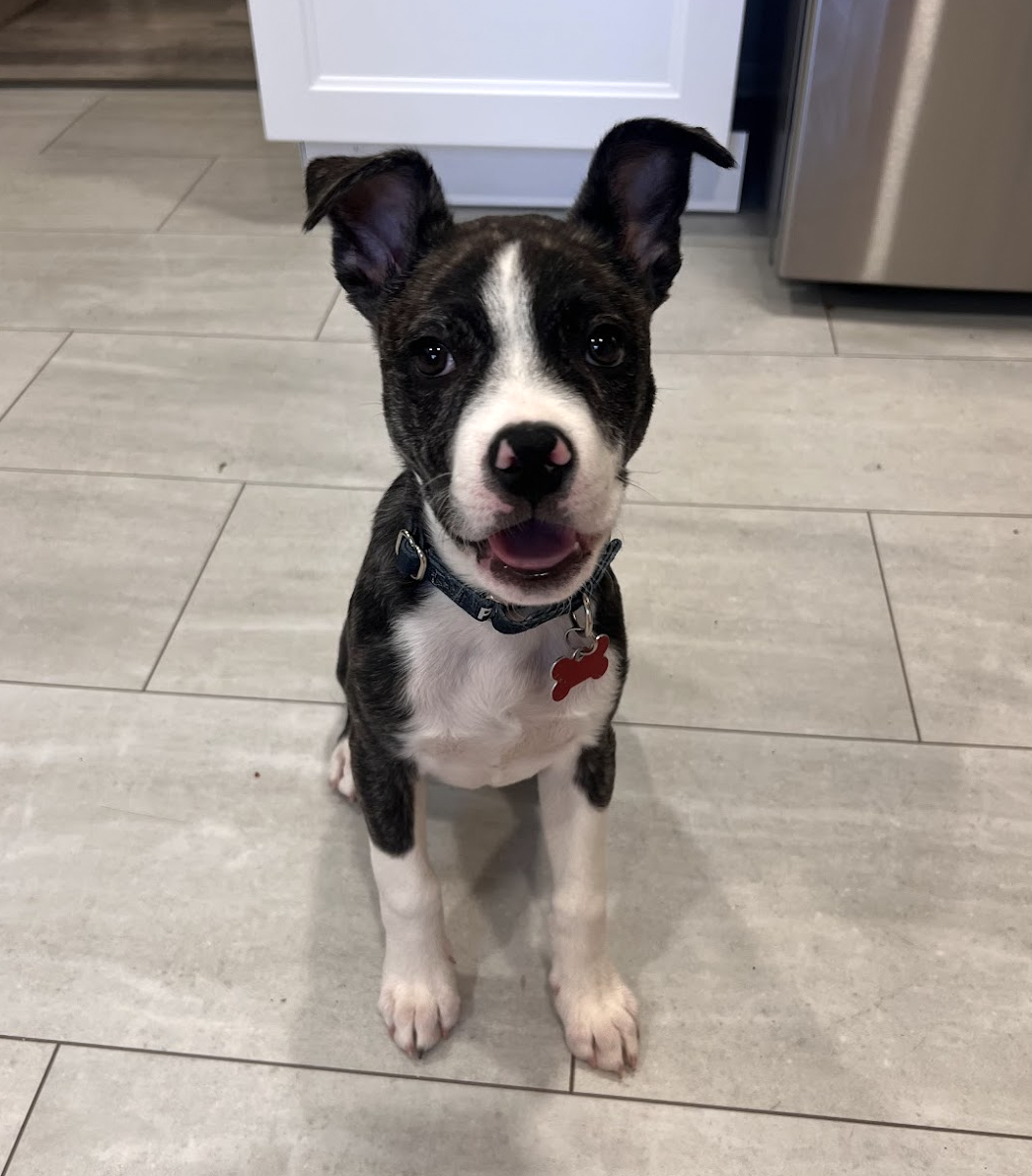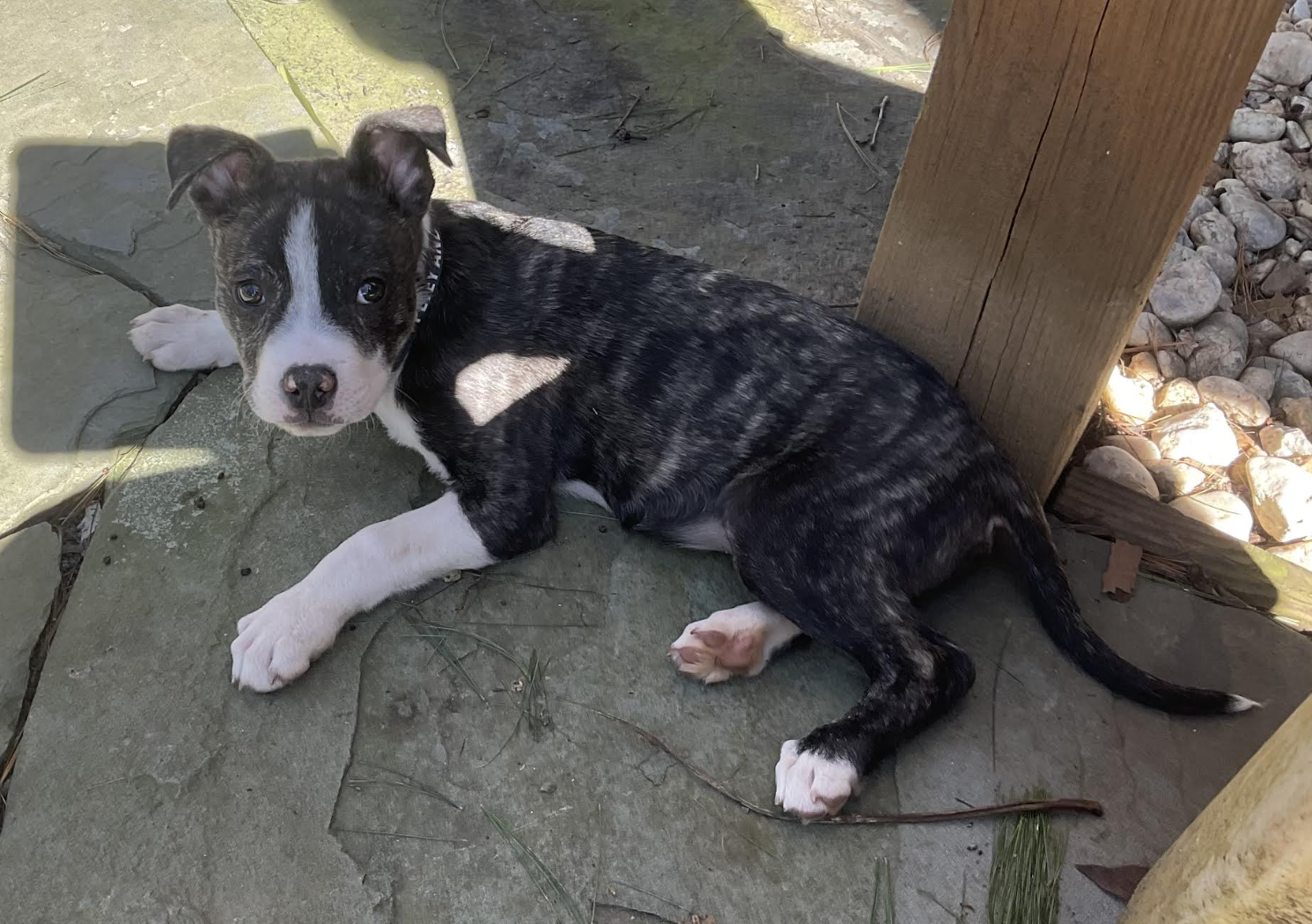 What my foster says: If you’re looking for a snuggle bug with a side of silliness, Oswald is your guy! Oswald is easygoing, affectionate, and snuggly. He loves people and other dogs, but would do best in a home without kitties because he tries to chase and play. He can sometimes be a bit shy with people he doesn’t know and will need to get out in the world and start socializing. He hasn’t met many children yet, but he seemed to like them at adoption events. Oswald likes his toys. He is especially fond of toys he can chew on. He is cautious when he is outside in the backyard. It is all new to him so he doesn’t wander too far from the door. Oswald is still very young and working on house training. He is learning to use pee pads in the house and does go when he is let outside in the morning. Oswald is crate trained and sleeps in his crate all night and during nap times. He is still getting used to not having his sister in the crate with him. When he gets lonely he barks for a short time and then goes back to sleep. Overall, he’s a super sweet, snuggly, trainable puppy looking for his furever home.