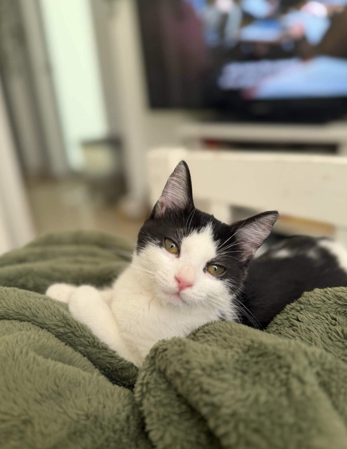 Story: Gracie was rescued from a kill shelter in Puerto Rico. We are so happy to have her with us in a foster home. Gracie is a happy and sweet young cat. She spends her days cuddling and playing with her foster family and chasing all the fun toys they have.
