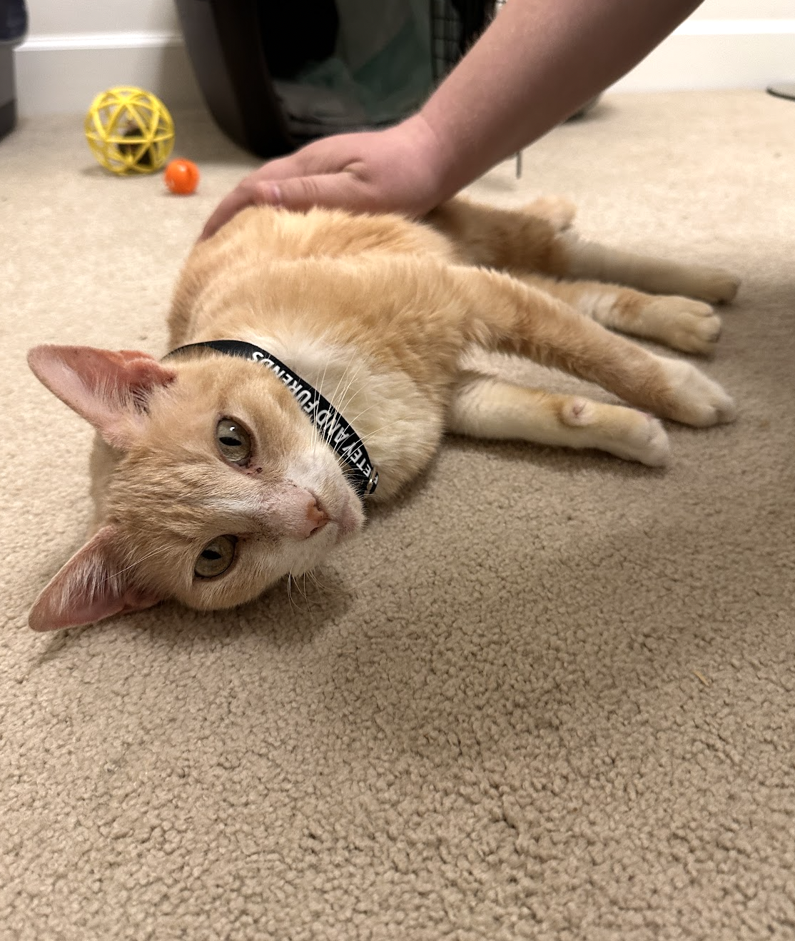 Story: Marmalade was rescued from a shelter in North Carolina. We are so happy to have her safe and sound in a foster home the DC area. Marmalade is a happy and sweet young cat. She spends her days cuddling and playing with her foster family and chasing all the fun toys they have.