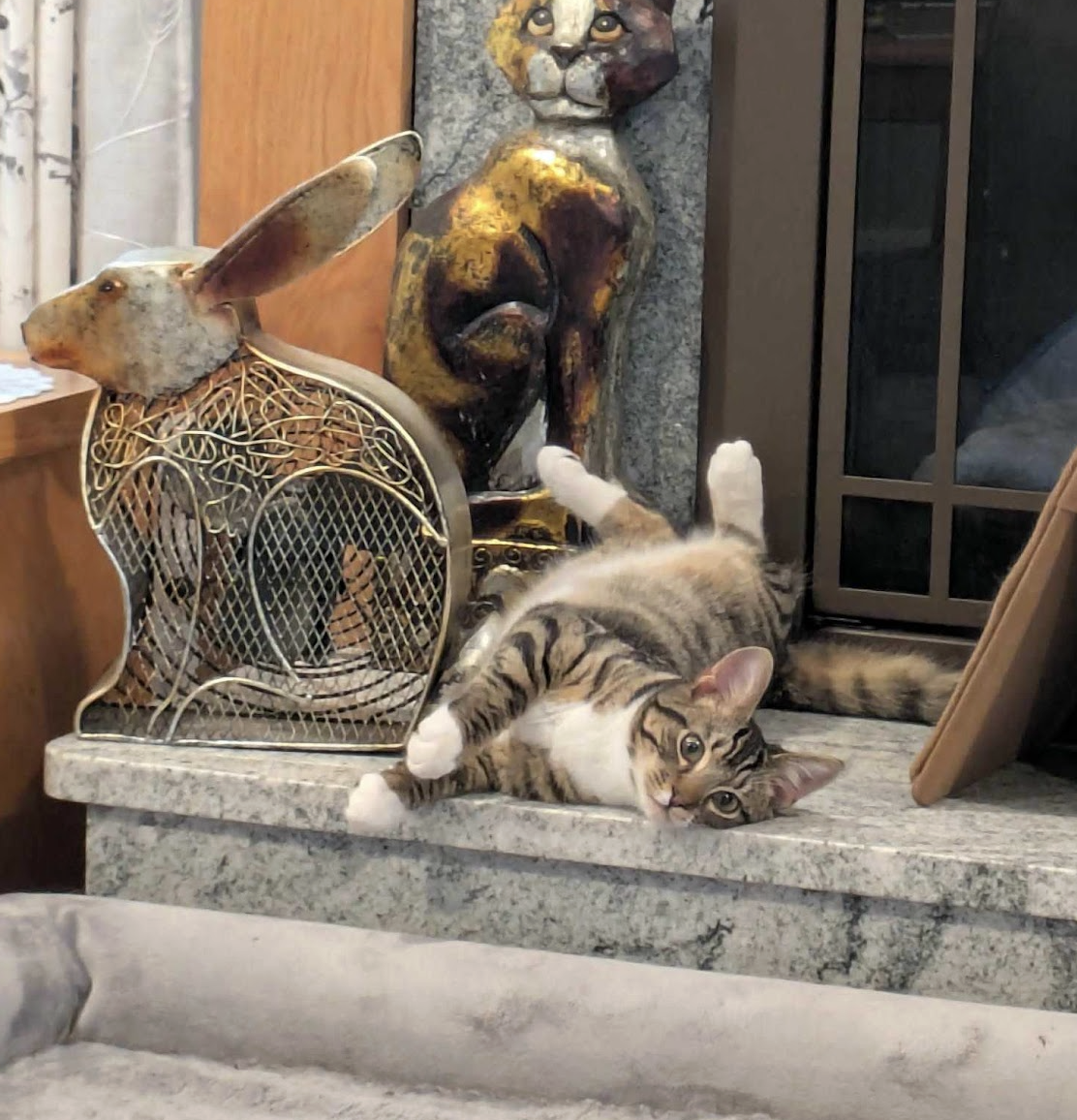 Story: Prancer was rescued from a shelter in North Carolina. We are so happy to have him with us in a foster home now. Prancer is a happy and sweet young cat. He spends his days cuddling and playing with his foster family and chasing all the fun toys they have.