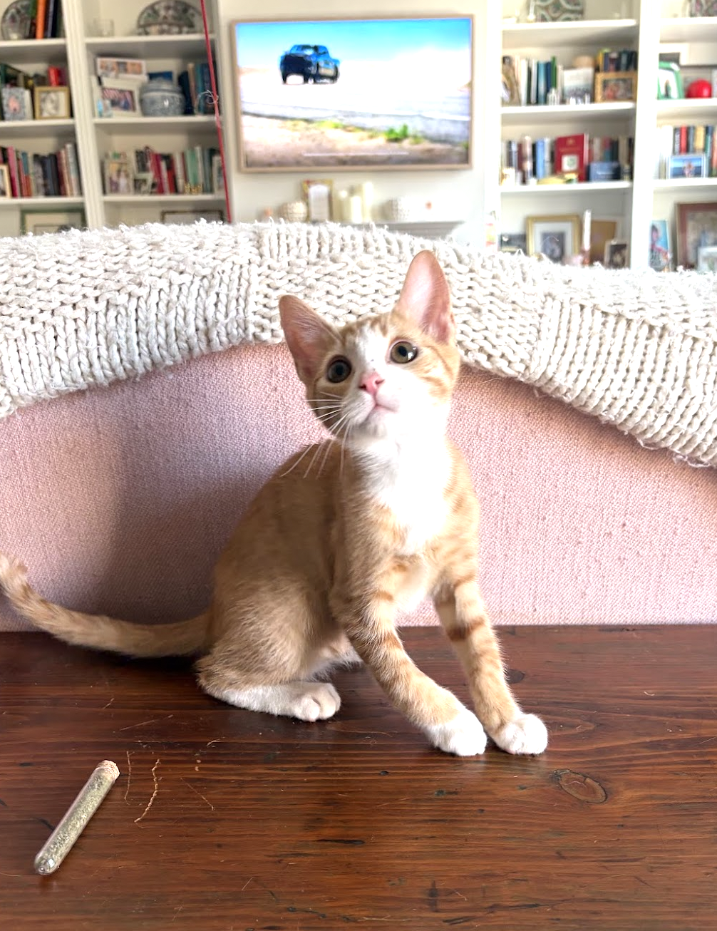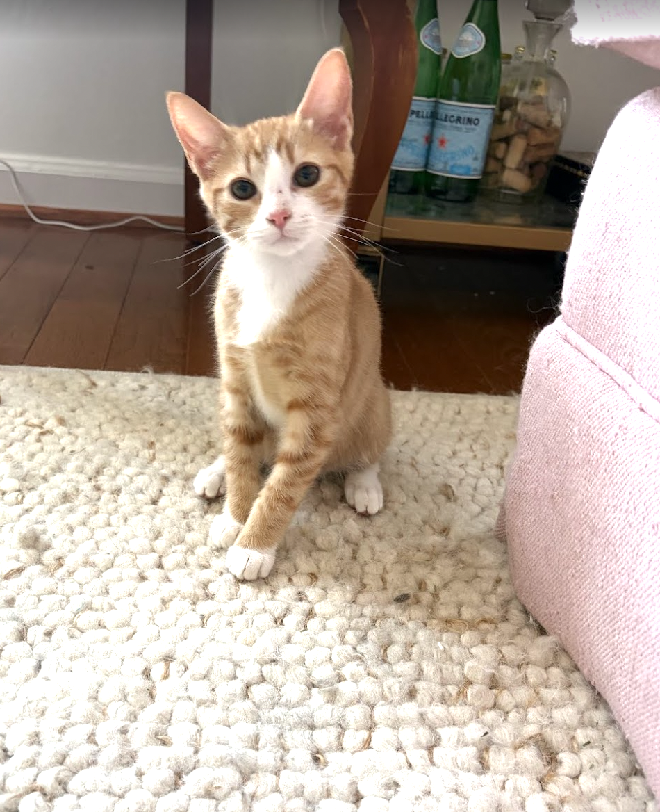 Story: Simon was rescued with two littermates from a shelter in North Carolina. We are so happy to have him with us in a foster home. Simon is a happy and sweet young cat. He spends his days cuddling and playing with his foster family and chasing all the fun toys they have.