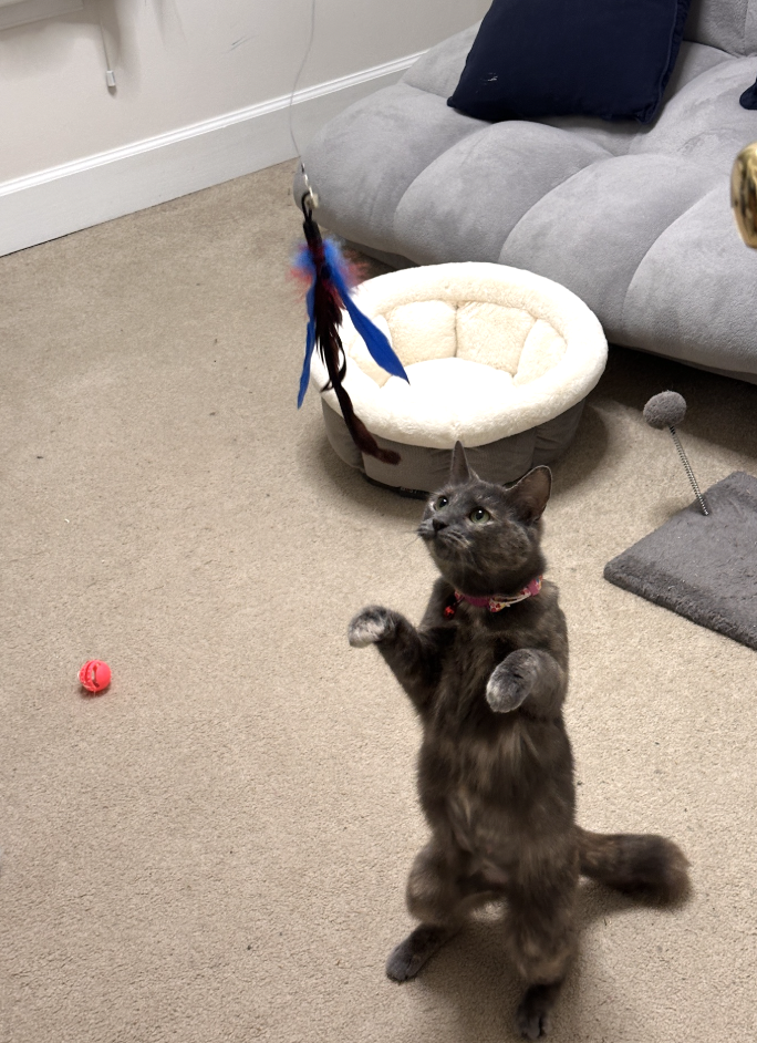 Story: Star was rescued from a kill shelter in North Carolina. We are so happy to have her with us in a foster home. Star is a happy and sweet young cat. She is still settling in and a little shy, but soon enough she’ll spend her days cuddling and playing with her foster family and chasing all the fun toys they have.